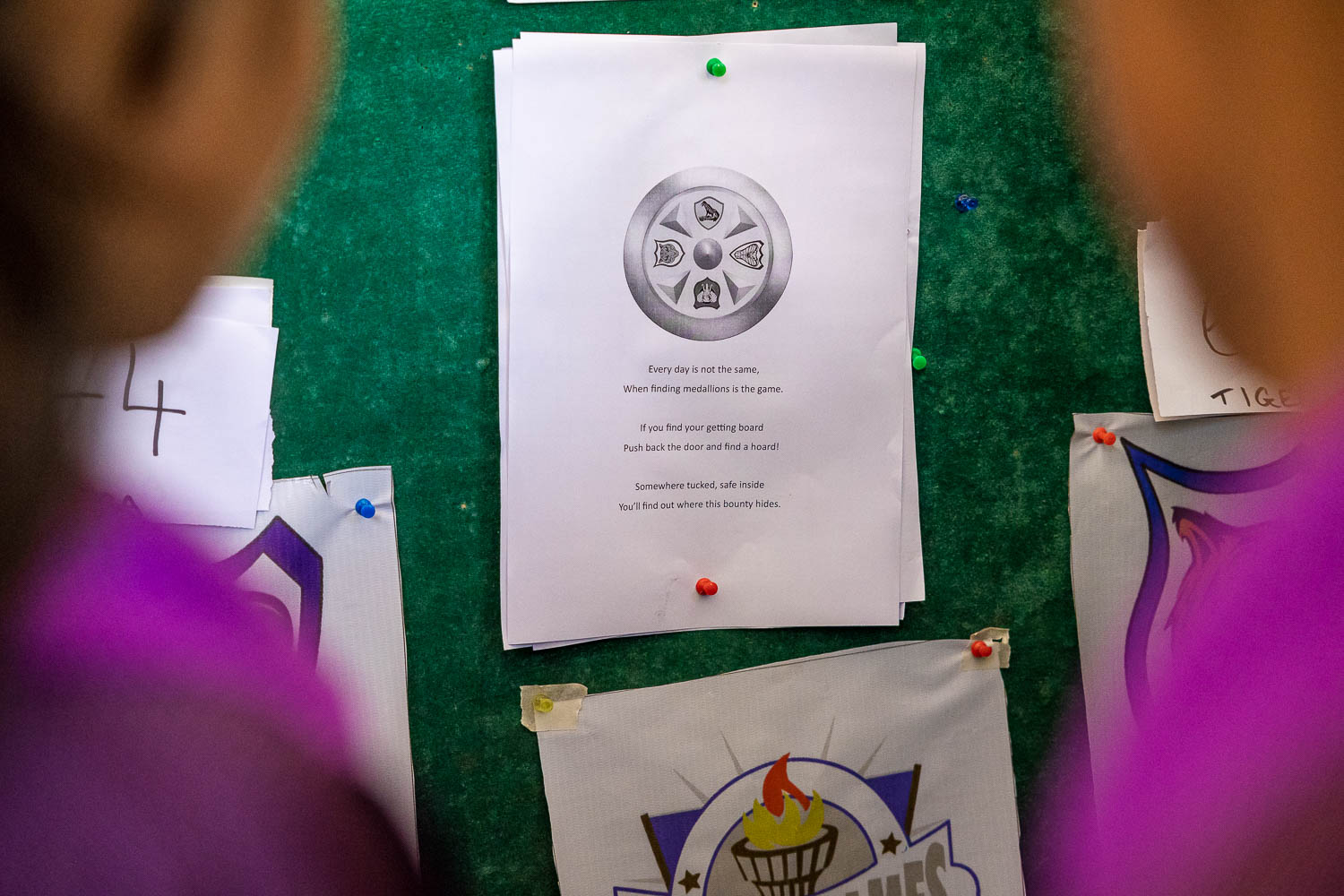 In addition to their coloured Team Buffs and Battle Standards each team is given a Team Shield to protect. This shield has to be held on to at all times between 7:00am to 7:00pm each day. If left unprotected shields can be picked up (stolen) by another team and along with the shield, one point is stolen from the team who lost their shield. Our kids have been known to take afternoon naps clutching their shields to their chests to protect them!